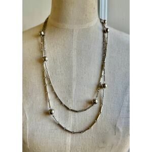 70's Vintage Silver Tone Ball Link Chain Long Necklace