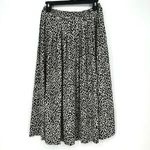 70s Vintage Skirt Womens Small Black Midi Print Pleated Cottage Boho Bohemian
