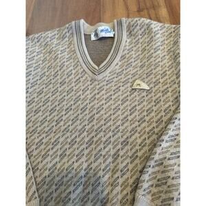 70s Vintage Sweater 100% Wool Mens Geometric V-neck Small Short Arms READ Cobain