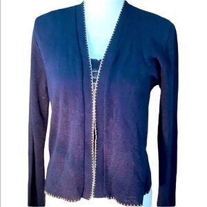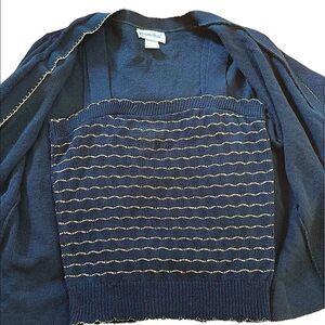 70s Vintage Twinset Dark Blue and Gold Knitted Tank and Cardigan size small