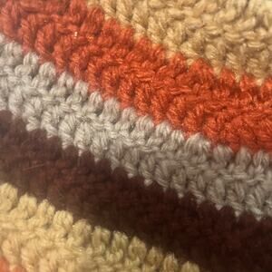 70s Vtg Knit Crochet Boho Striped Hoop Handle Purse Festival Retro Earthy