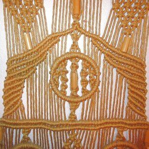 70s Vtg Macrame Wall Art Hanging Handwoven Bamboo Wood Tapestry Boho Hippie 60"