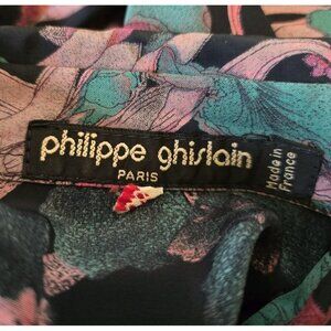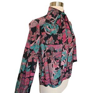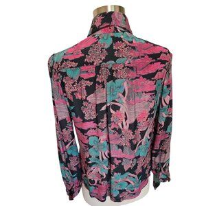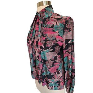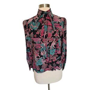 70s Women Vintage French Designer Blouse w/ Neck Tie Button Front Shirt Size 38