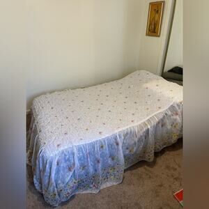 Vtg 1960s 70s semi sheer white multicolor butterfly print floral hem bedspread