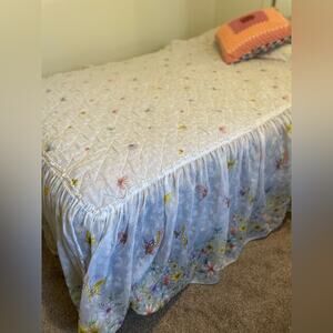 Vtg 1960s 70s semi sheer white multicolor butterfly print floral hem bedspread