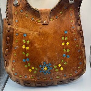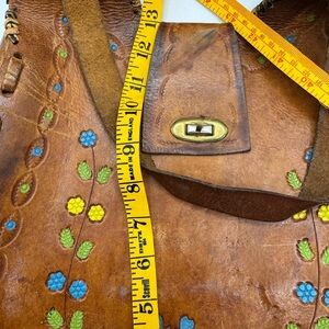 70’s hand tooled floral embossed leather saddle bag shoulder bag. Boho