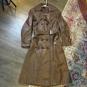 Dav Martin genuine leather coat. It’s a bit heavier since it is all leather. Lined on the inside. Great condition but there is a couple of dark spots in the back and front (shown in pictures). It has 2 extra buttons on the inside as well.