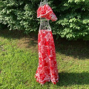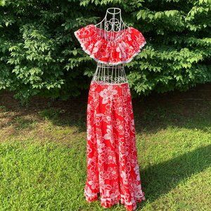 70s maxi skirt crop top |S - M| red white Hawaiian hibiscus flower print 1970s