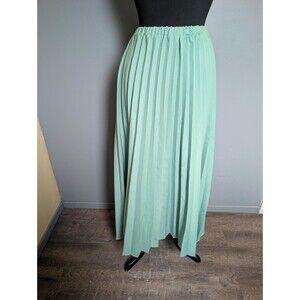 70s or 80s Green Pleated Maxi Skirt, Long Skirt Size M