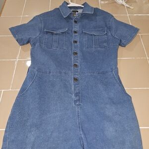 Tox;K3 70's style stretchy denim romper. Buttons down the front. Size M. Has belt loops. Only worn once.