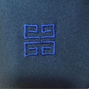 70s vintage blue Givenchy for Chesa polyester shirt. Good condition overall. For transparency, it does have some small pinholes on one sleeve. Not very noticeable. It is over 50 years old, so it’s from being used and then stored in my family’s closet.