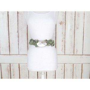 70s vintage green braided Abalone shell rope belt/woven chord statement belt