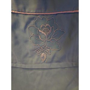 One of the Buttons at the top is missing and I do not have a match as it is covered with matching fabric. I will leave to the buyer to replace with a Button of your choosing. The belt is also missing.