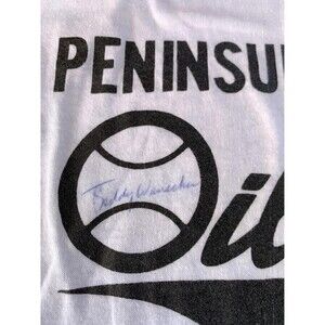 70s-80s Peninsula Oilers Baseball Tee autographed - white and red cotton tee size L