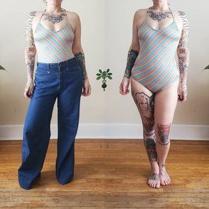 70s/80s Striped Rainbow Bathing Suit **HAS FLAWS**