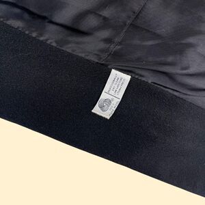 70s/80s wool trench coat by Holly Deb, vintage black jacket w gold-toned buttons