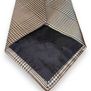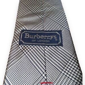 70s Burberry London Navy & White Glencheck Handmade Tie