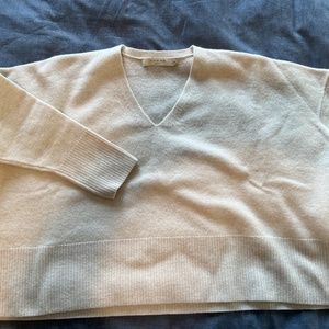 Gently worn from NYC brand. An elegant knit top with a relaxed v-neckline and a gentle, delicate drape. Slightly cropped fit with ribbed hem and cuffs and 3/4 length sleeves. Made from a soft extrafine merino wool that is light in weight, but incredibly warm.