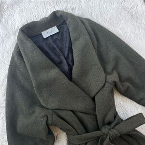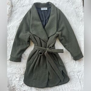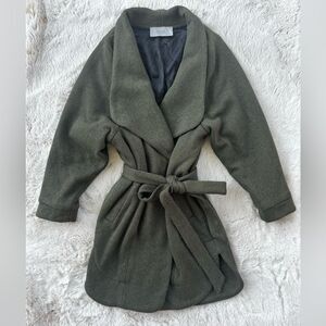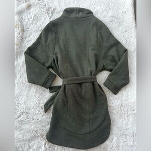 7115 by Szeki Olive Green Wrap Belted Pea Coat Minimalist Jacket