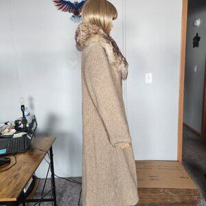 Sears Fashions 80% wool, 20% nylon double breasted coat, big, beautiful lamb fur collar, button closures, 2 pockets, no size tag, medium by measerments. Measrements qre arm pit to pit 22", shoulders 18", sleeves 23" and length 48".
