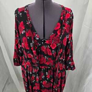 This Torrid midi dress in size 2 (18/20) is a beautiful blend of romantic and effortless! The black background with red rose print, officially called Rose Black Floral—makes it a standout piece for any season. It’s made from stretch challis fabric, so it’s soft, breathable, and moves with you. The V-neckline is accented with a chic neck tie, and the 3/4 sleeves have elastic cuffs for a comfy fit. And yes—it has pockets! It’s machine washable (cold) and line dry, made from 97% rayon and 3% spandex for that perfect mix of structure and stretch.