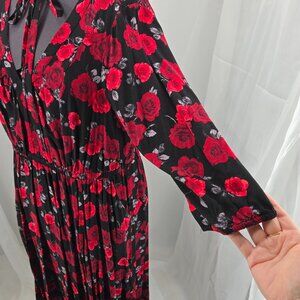 718-5 Torrid Midi Stretch Challis Tie Neck Dress Rose Black Floral Size 2 18/20