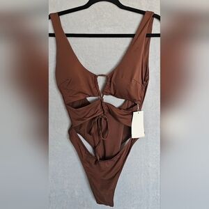 71.🆕Large Sexy Cutout Lace Up Backless High Cut One Piece Brown Monokini NWT