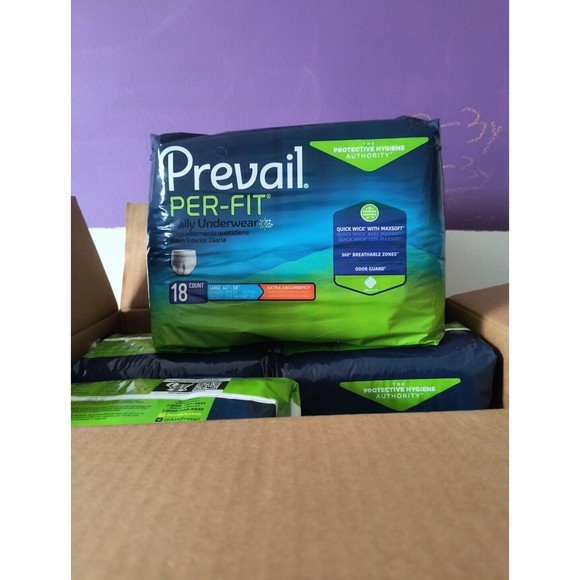72 Count Prevail Per-Fit Adult Briefs Diapers Size Large Extra Absorbency.
