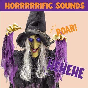 🧿This light-up talking witch has a sound activation function, which creates a creepy and scary atmosphere for any Halloween events, spooky entertainment, haunted houses party and other themes occasions. 3 AAA batteries required (NOT INCLUDED)