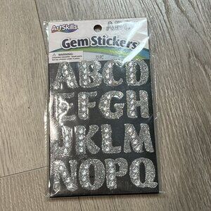 72 Piece ArtSkills Glitter Gem Stickers Letters Alphabet 1" Silver Budget