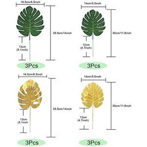 🧿Value Pack Include: 6pcs large & 18pcs medium & 24pcs small monstera palm leaves, 15pcs/4styles green tropical leaves with stems ,9pcs /3 styles Golden artificial leaves with stems, total 72pcs ,10kinds.