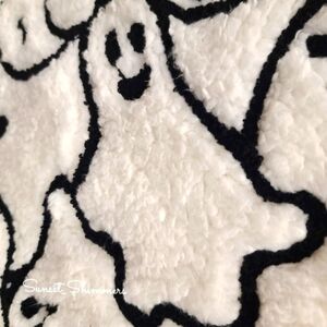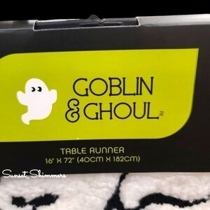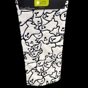 Here we Have a new tags, black & white, sherpa /teddy fabric ghost table runner / centerpiece by goblin & ghoul for your halloween decor. Measures 16"x72". Soooo cute!