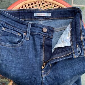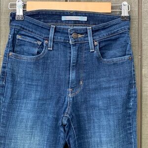 In excellent used condition. Soft stretchy denim is dark and crisp. Waist 12” Rise 9.5” Inseam 29”