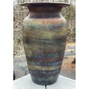 7.25" Vintage 20th C. Raku Iridescent Glazed Pottery Ceramic Vase Ramer Art