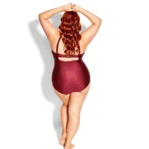 725-18 City Chic Merlot Cancun Underwire One-Piece Swimsuit Size S (16)