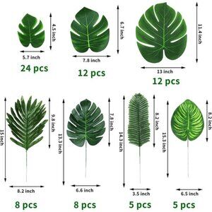 74 Pcs 7 Kinds Artificial Palm Leaves Tropical Fake Leaves