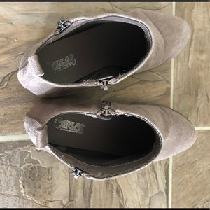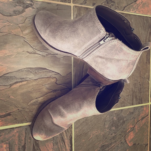 Beautiful 7.5 booties that are grey/tan in color. Some slight discoloration (bought that way), see pictures. Such a great color to go with just about every outfit. I only actually wore these out to one event, just a little small for me.