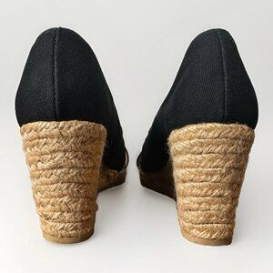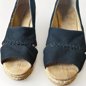 (7.5) GH BASS & CO "ANDI" Peep Toe Black Canvas Espadrille Shoes