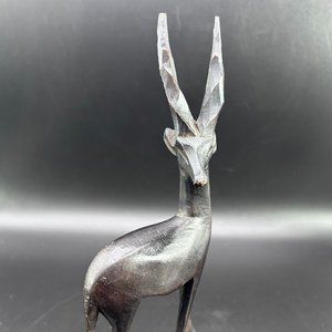 Hand carved wooden impala figure decor accent.