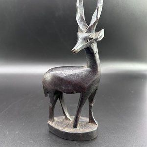 7.5" Hand Carved Dark Wooden Impala Figure Table Mantle Shelf Decor Accent