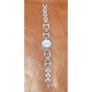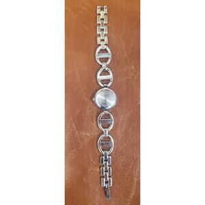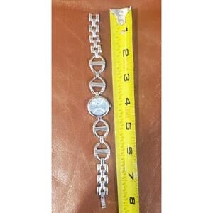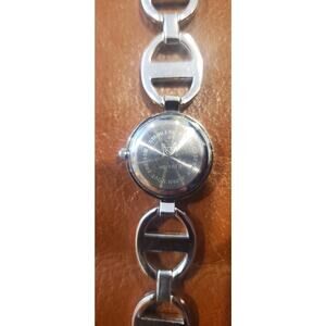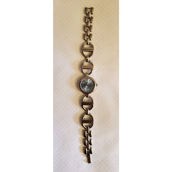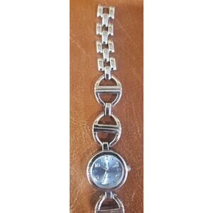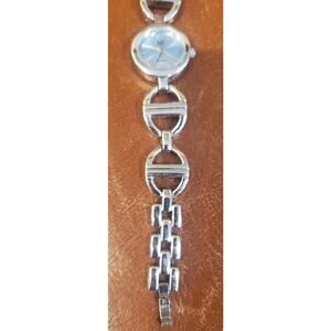 7.5 In Stainless Steel Caseback Japan Movt Blue Face Quartz Watch SR626SW Needs Repaired. Watch works, but does not keep time properly. Needs repaired or use as parts. The band is beautiful, but has surface scratches. See photos for details.