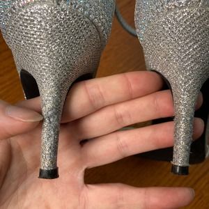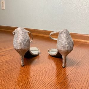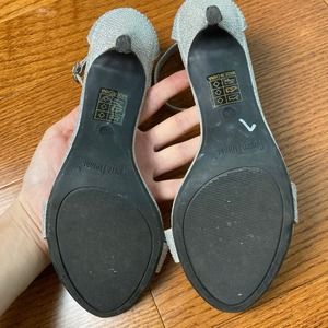 7.5 M Pierre Dumas Silver gem crystal sparkly formal Heel Stiletto ankle strap
