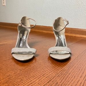 7.5 M Pierre Dumas 3 inch Silver gem crystal sparkly formal Heel Stiletto ankle strap buckle strappy strap sandal open toe