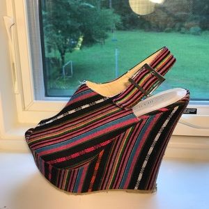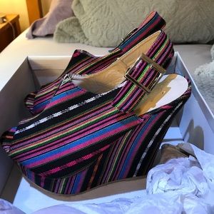 Colorful, comfy bohemian multi-striped wedges by Delicacy. Size 7.5. Perfect for matching with a sundress, or for any summer occasion! Definitely willing to take lower bids, name your price ladies 😊!!