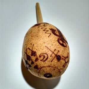 11" hand carved Native American pictograph maraca.