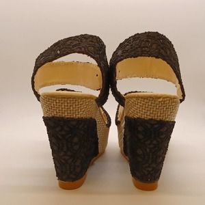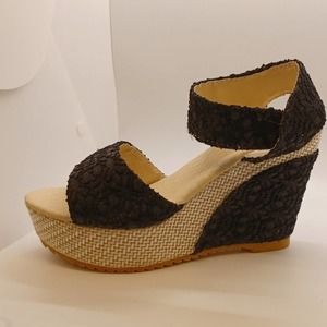 NEW 7.5 Wedge Sandel of Black Lace Straps with Closures Needed