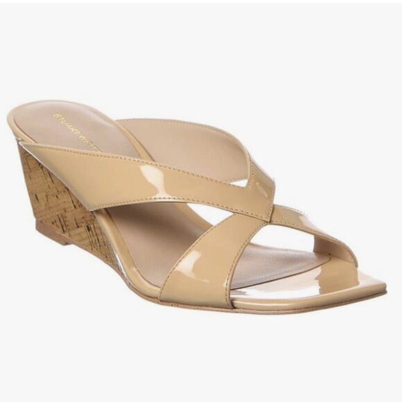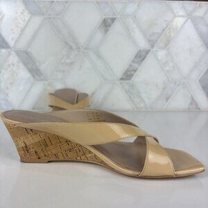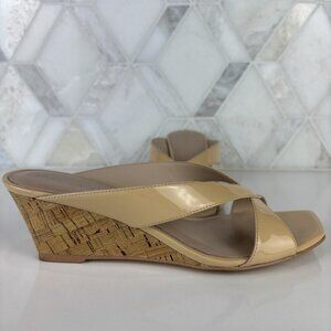 7.5 Patent Cork Wedge Heel Sandal Square Toe Criss Cross Strap Tan Leather Miami