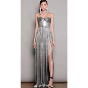 $750 BRONX AND BANCO Florence Metallic Strapless Maxi Dress Gown L Free People