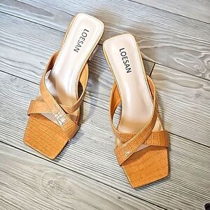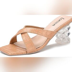 (75-2672) Loesan Women's Square Heels Sandals Block Lucite Clear Sz 40 (9.5)