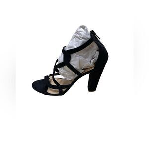 Elegant black strap suede leather high heel sandals, heel height: 4”, no original shoes box